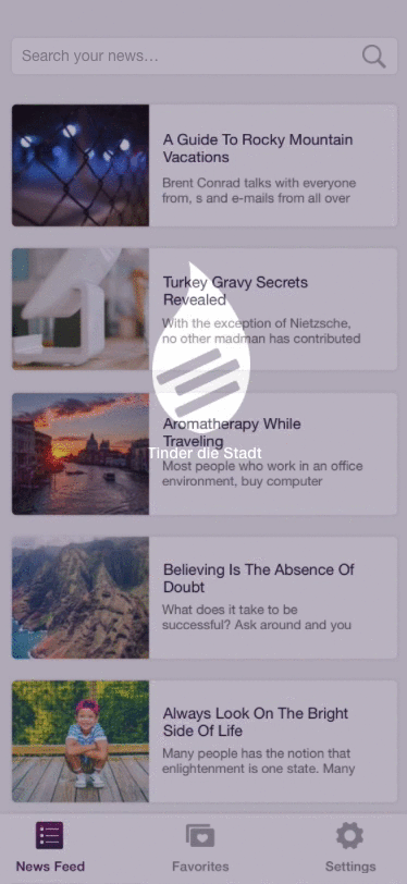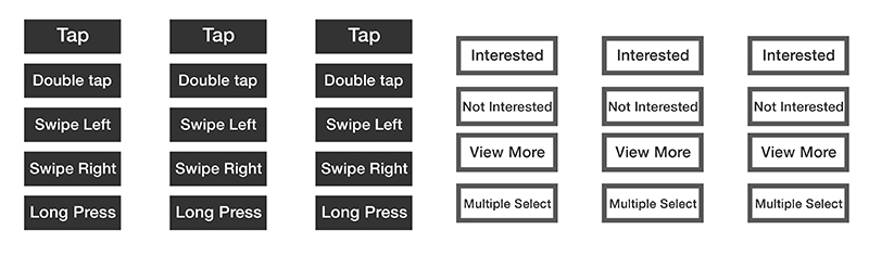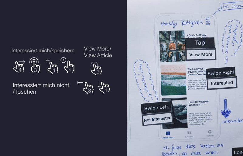 One of the areas was possible movements and gestures. Because of the feature in the app and the back mechanism, the news will appear to users by the detected region and their interests. In this case, some reliable gestures for having convenient movements was essential. Therefore we select possible gestures and movement to get feedback from user base on their past experience in other apps.